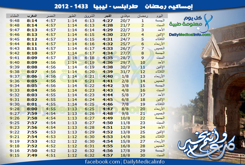رد: امساكية رمضان( مدن المملكة , والدول العربية والاسلامية) امساكية رمضان/ 2012 - 1433