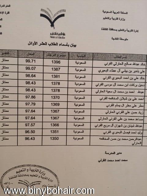 اسماء العشرة الاوائل بثانوية سهيل بن عمروبالفائجة للعام1435هـ | علي بن قحمان القرني | مدرسة ثانوية سُهيل بن عمرو بالفائجه | 1 | 06-04-2014 11:24 PM |