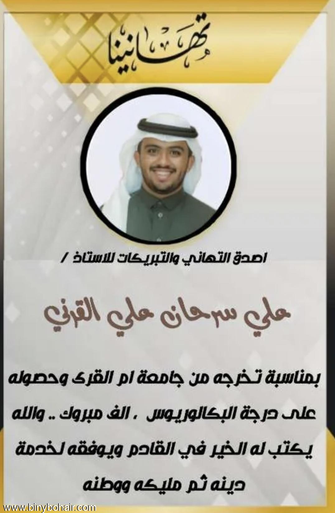 تهنئة … حصول " سعيد احمد سعيد ابوشوارب " على البكالوريوس ( دراسات اسلامية" من جامعة ام القرى | علي بن قحمان القرني | أفراح وتهاني بني بحير بلقرن | 2 | 06-21-2022 08:19 AM |