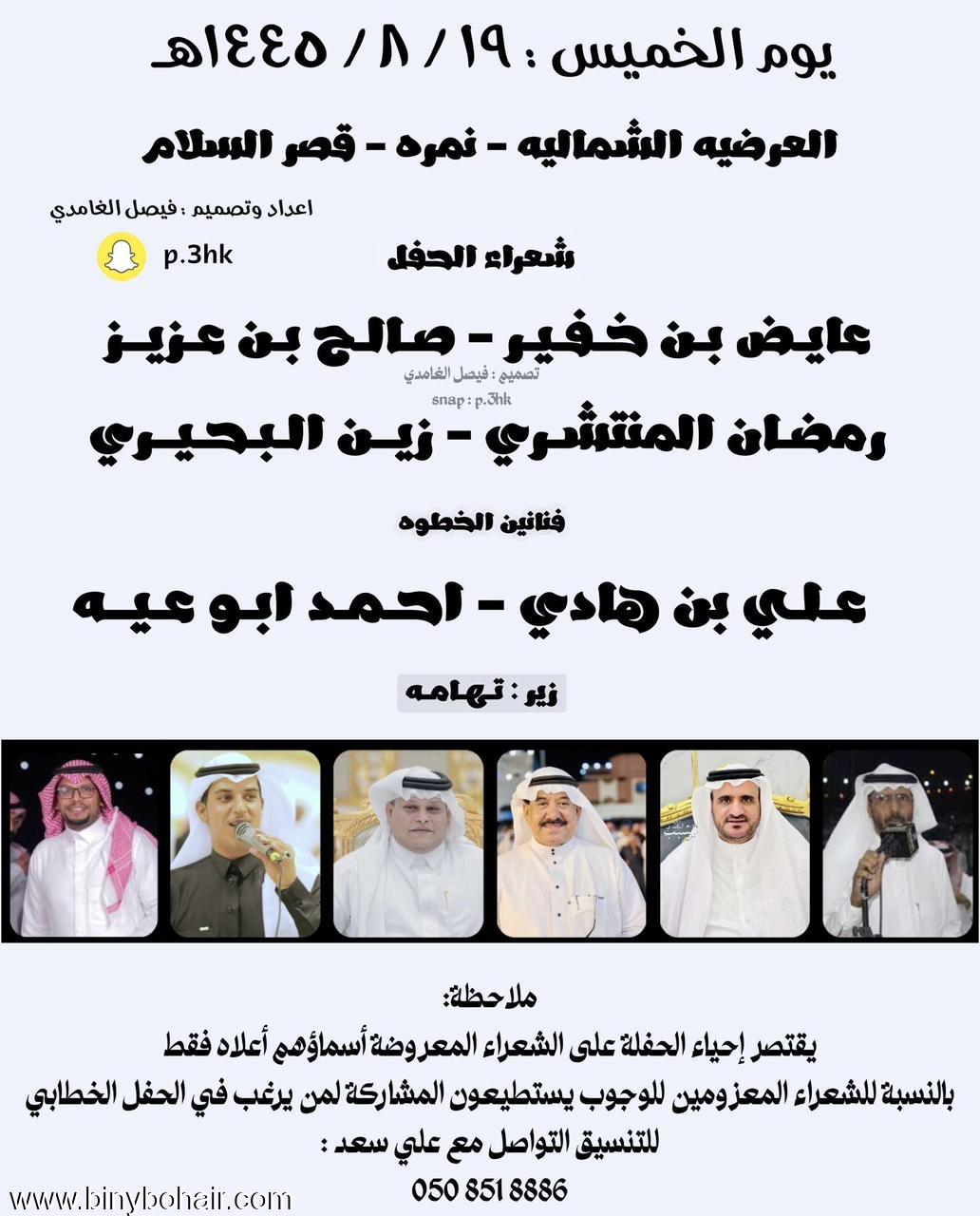 | الشاعر" صالح بن عزيز" يمتدح بقصيدة في " محزوم احمد البحيري" بعد تعيينة عريفة لفخذ آل فريّة | علي بن قحمان القرني | ملتقى بنى بحير بلقرن للشعر الشعبي | 1 | 10-28-2021 11:37 AM |