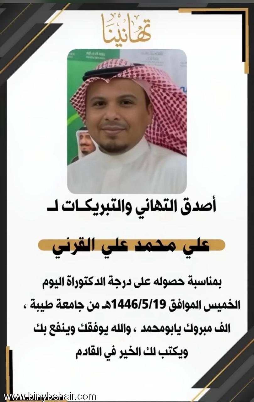 | تهنئة حصول " محمد حسين البحيري " على الدكتوراة في تفسير القرأن من الجامعة الاسلامية بالمدينة | علي بن قحمان القرني | أفراح وتهاني بني بحير بلقرن | 2 | 10-24-2020 08:04 PM |