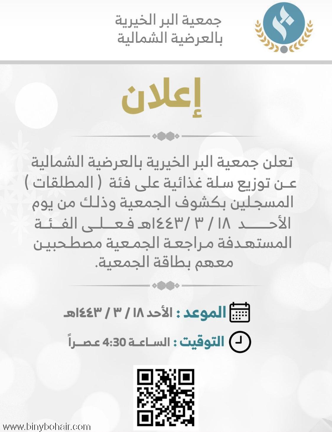 جمعية البر الخيرية بالعرضية الشمالية تدعو المستفيدين لتحديث بياناتهم لعام1443هـ | علي بن قحمان القرني | جمعية البر بالعرضية الشمالية | 0 | 08-23-2021 11:29 PM |