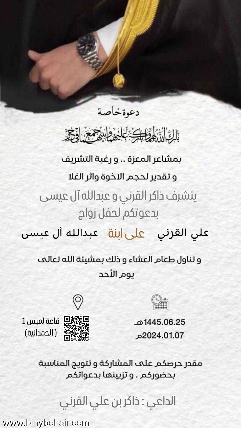 لميس1, لحضور, ابنه, ذاكر علي القرني, بالحمدانية, بجده, بدعوتكم, بقاعة, يتشرف, دعوة, or 25, زواج, على, في |