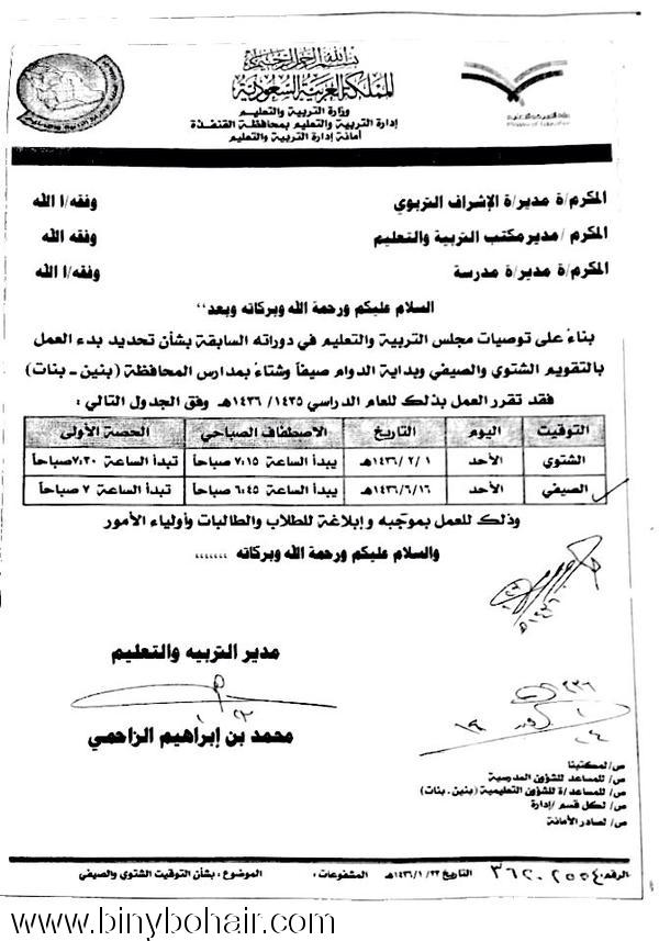| “تعليم القنفذة” يقرّ الصيغة الجديدة لتوقيت الدوام الشتوي | علي بن قحمان القرني | مواضيع التربية و التعليم | 2 | 01-22-2016 06:38 AM |