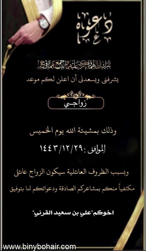 "عبد الخالق سعيد القرني"(ملعص) يشعركم بزواج ابنه " علي" 1441/11/13 | علي بن قحمان القرني | أفراح وتهاني بني بحير بلقرن | 1 | 07-03-2020 09:21 PM |