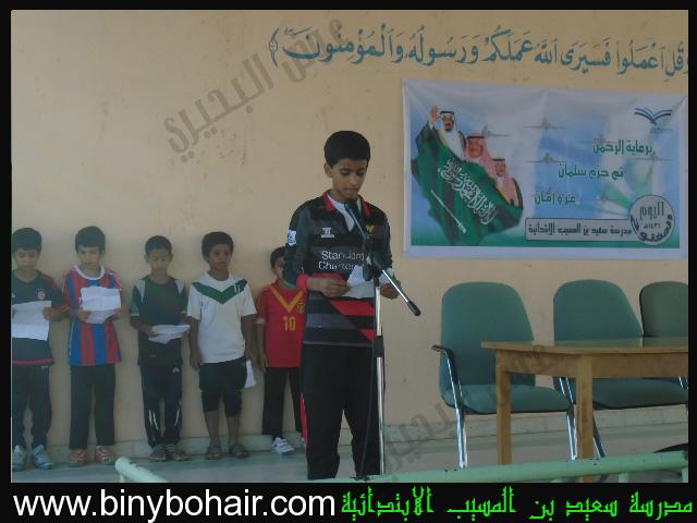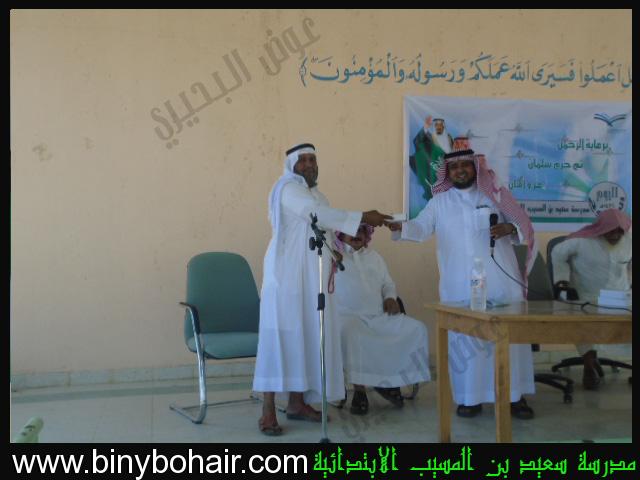 لفعاليات مدرسة سعيد بن المسيب بقرية الحمظة والشكر موصول لأدارة مدرسة وكافة منسوبيها وانا سعيد جدا وفخور بان اشوف مدرسة قريتي والتي درست بها لها الحضور بمنتدى بني بحير بفعالية تحتي شعار رائع وفقكم الله وشكرا لكم |