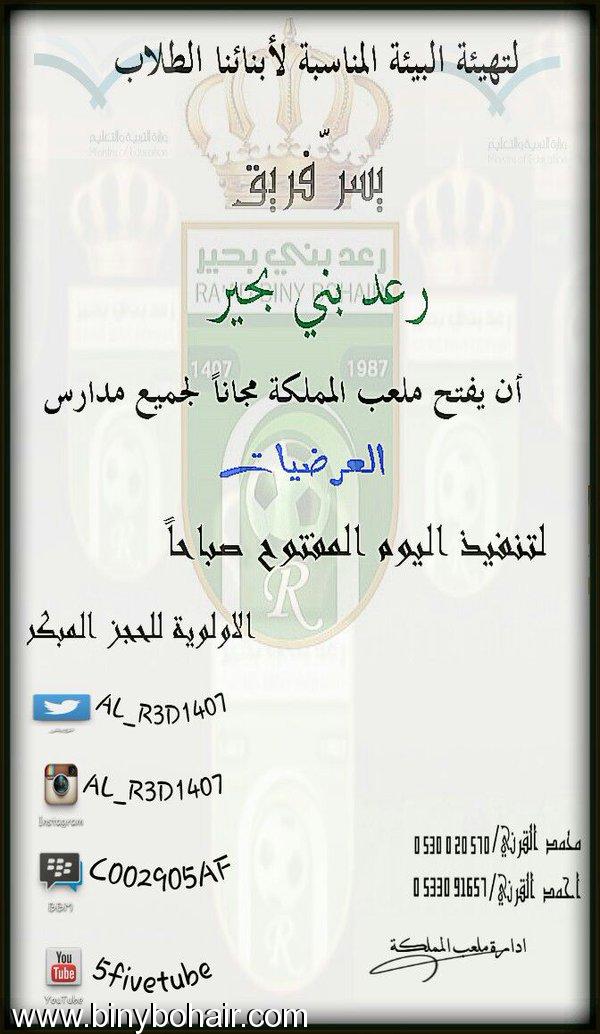 افتراضي رد: رعد بني بحير يفتح ملعب المملكة لجميع مدارس العرضيات لليوم المفتوح