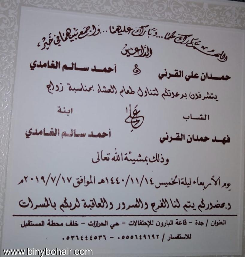 دعوة.."مزهود بن حديد القرني"يتشرف بدعوتكم لحضور زواج ابنه " علي "1440/7/29 في قاعة الاندلس بجدة | علي بن قحمان القرني | أفراح وتهاني بني بحير بلقرن | 1 | 03-21-2019 08:49 PM |
