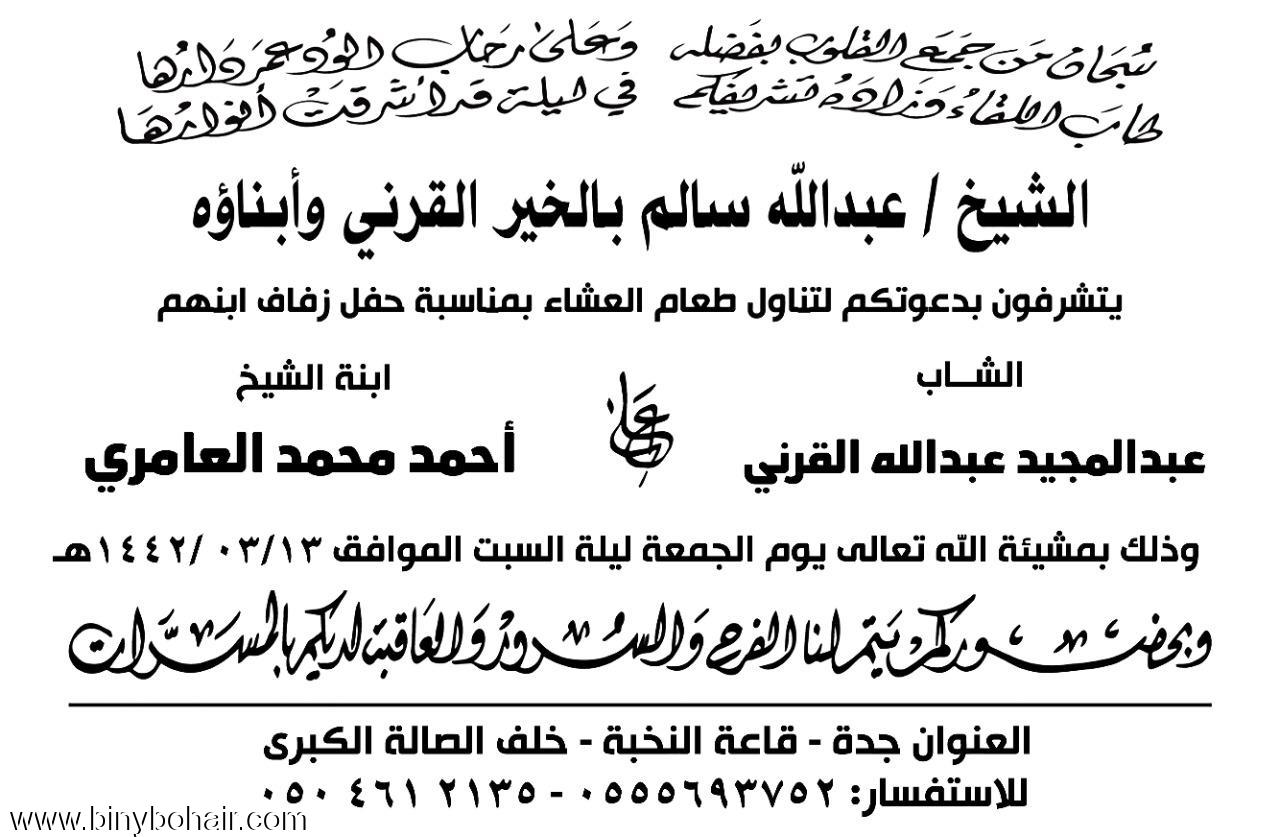 دعوة ... يتشرف "عبدالله سالم بلخير القرني" بدعوتكم لحضور حفل زواج ابنه "سلطان" بجده | علي بن قحمان القرني | أفراح وتهاني بني بحير بلقرن | 0 | 11-24-2019 04:35 PM |