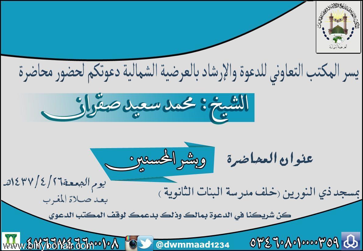 محاضرة شرح قوله تعالي"فاذكروني اذكركم"بعد مغرب اليوم بالمرجبات | علي بن قحمان القرني | مكتب الدعوة بنمرة | 2 | 10-26-2016 10:25 PM |