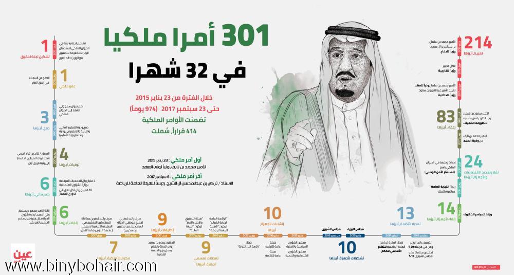 افتراضي انفوجرافيك.. في فترة وجيزة الملك سلمان يصدر 301 أمرا ملكيا في 32 شهرا