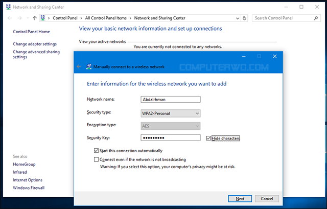 كيفية اخفاء شبكة WiFi وهل هي أفضل طريقة للحماية من الاختراق؟ بالتأكيد إذا كان لديك راوتر فى المنزل فسوف تسعى لجعله آمن بعيداً عن القرصنة التى تتم بسهولة هذه الأيام، وبالطبع لن تكون سعيداً عند حدوث شيء كهذا، ولذلك تعرفنا من خلال مقالات عالم الكمبيوتر على طرق وخطوات كثيرة لحماية شبكة الواي فاي حيث قدمنا كيف تحمي شبكة الواي فاي من الاختراق ثم قام الكاتب المميز قصي خليفة بتوضيح بعض النصائح الهامة لحماية شبكتك من الاختراق وايضاً تناولنا طريقة مميزة لمنع أي شخص آخر عدا أجهزة المحددة الاتصال بالراوتر وغيرها من طرق حماية الراوتر والواي فاي، وسوف ينضم هذا المقال ايضاً لهذه الطرق حيث نستعرض معكم طريقة اخفاء شبكة الـ Wi-Fi بحيث لا يعثر عليها اي جهاز او يكتشفها ويحاول اختراقها. الفكرة التى نعتمد عليها هنا هي أن اي راوتر يحتوي على خيار يسمح بالتحكم فيما إذا كنت تريد بث الـ SSID (اسم الشبكة) أم لا، فإفتراضياً يكون مسموح بـ بث اسم الشبكة بحيث تعثر عليها ضمن قائمة نقاط الواي فاي القريبة سواء من اللاب توب او الهاتف او اي جهاز يدعم Wi-Fi، ولكن إذا حاولنا إيقاف بث اسم الشبكة فلن تظهر ضمن قائمة النقاط المكتشفة حتى لو كان الجهاز قريب من الراوتر ويُمكن الاتصال بالشبكة بطريقة يدوية، وهذا ما سوف نقوم بإستعراض كيف يتم من خلال السطور التالية. لكن ضع فى اعتبارك أن الخطوات تختلف من راوتر لاخر بسبب إختلاف واجهة المُستخدم الخاصة بشاشة الاعدادات للراوتر، لكن على أي حال وكما أشرنا سوف تجد خيار إيقاف بث الـ SSID حتماً فى الراوتر لديك. كل ما عليك القيام به هو التوجه إلى صفحة إعدادات الراوتر وذلك عن طريق فتح اي متصفح انترنت ثم كتابة الـ IP الافتراضي للراوتر والذي يكون عادة "192.168.1.1" فى شريط العنوان أعلى المتصفح، بعد الضغط على زر Enter سوف يطلب منك كتابة اليوزر نيم والباسورد فتكتب "admin" فى كل الخانات ثم تضغط Log In وسوف تظهر لك صفحة إعدادات الراوتر على الفور، من خلال هذه الصفحة انتقل إلى القسم الذي يجمع إعدادات التحكم فى شبكة الواي فاي - Wireless ثم ابحث عن الخيار المُسمي Broadcast SSID وثم بتعطيله كما مشار فى الصورة أعلاه، بعد ذلك اضغط على زر Save لحفظ الإعدادات الجديدة. الآن أصبحت شبكة الواي فاي الخاصة بالراوتر مخفية، فمثلاً إذا حاولت تفعيل الواي فاي فى اللاب توب وتحققت من قائمة الشبكات الممكن الاتصال بها لن تتمكن من رؤية اسم شبكة الواي فاي، ولكن إذا كنت تريد الاتصال بها فسيكون الأمر يدوياً، فإذا كنت تستخدم نظام ويندوز فما عليك سوى النقر كليك يمين بالماوس على ايقونة الواي فاي المصغرة من شريط المهام ثم النقر على خيار Open Network and Sharing Center ثم من النافذة التى ستظهر اضغط على خيار Set up new connection or network ثم من النافذة الآخري ايضاً اضغط على Manually connect a wireless network وبعدها ستقوم بإدخال بيانات الشبكة بداية من الاسم ونوع تشفير كلمة السر ثم كلمة السر نفسها وبعد ذلك اضغط على زر Next حيث يبدأ الجهاز بالاتصال بهذه الشبكة الخفية واستخدام الانترنت بدون مشاكل. اما بالنسبة لهاتفك الذكي فإذا اردت ايضاً الاتصال بالانترنت بواسطة هذه الشبكة الخفية فكل ما عليك هو الانتقال إلى الإعدادات او الضبط Settings ثم تضغط على قسم Wi-Fi وتقوم بتفعيله، بعد ذلك قم بعرض قائمة الخيارات من خلال الشريط العلوي او بالضغط على زر القائمة المدمج فى الهاتف، ونضغط من القائمة على Add Network ومن ثم ستقوم بإدخال المعلومات المطلوبة للاتصال بهذه الشبكة مثل الاسم ونوع التشفير وكلمة السر، وبالضغط على زر Connect سيصبح الهاتف متصلاً بالانترنت عبر هذه الشبكة الخفية. - هل أصبحت شبكة الـ Wi-Fi مخفية حقاً ؟! هام جدًا جدًا نأتي للسؤال الذي ربما يدور فى ذهنك الآن! هل بعد إخفاء شبكة الواي فاي أصبحت فى مأمن بعيداً عن القرصنة ؟ دعني اخبرك ان هذه الطريقة تعتبر أفضل طرق حماية الراوتر لانها بالفعل تبقيك فى مأمن بعيداً عن الاختراق بالطرق التقليدية التى تكون عبار تطبيقات الهاتف وبرامج الكمبيوتر الشهيرة لكن ليس بشكل عام بح