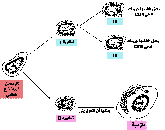 + أعضاء الجهاز المناعي وأصل الخلايا المناعية وموقع نضج اللمفاويات