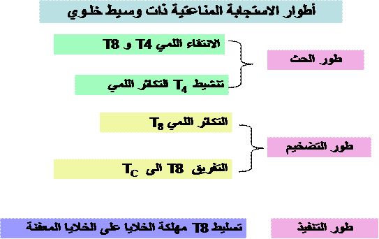 + مراحل الاستجابة المناعية النوعية (الحث والتضخيم والتنفيذ) وآلياتها