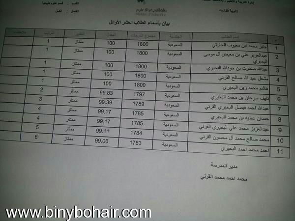 أسماء العشرة الاوائل في ثالث ثانوي في ثانويةالفائجة | علي بن قحمان القرني | مدرسة ثانوية سُهيل بن عمرو بالفائجه | 3 | 06-09-2013 08:43 AM |