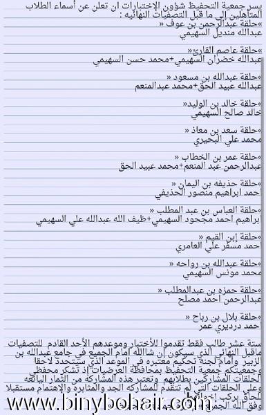 جمعية التحفيظ القرأن الكريم بالعرضيات تعلن عن أسماء الطلاب المتأهلين إلى ما قبل التصفيات النهائيه 1434/6/1هـ ![]() |