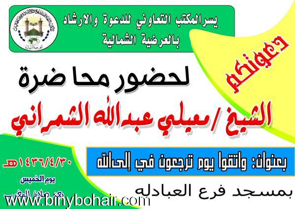 مكتب الدعوة بنمرة يقدم محاضرة(فضل الاستغفار) للشيخ معيلي الشمراني بمسجد شعب ال عباس | علي بن قحمان القرني | مكتب الدعوة بنمرة | 1 | 02-13-2015 08:54 AM |