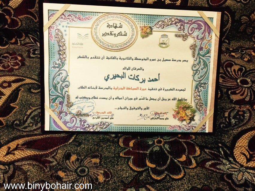 ![]() ![]() كرمت مدرسة سهيل بن عمرو بالفائجة اليوم الوالد / احمد بركات ال يسلم البحيري بعد ان قدم دورة "السباكة المنزلية" بالمدرسة لأبنائة الطلاب ..وقد وفق في تقديمها شرحاً وتطبيقا ... وقد قدمت له المدرسة شهادة شكر وتقدير نظيرا لما قدمه لأبنائه الطلاب ![]() |