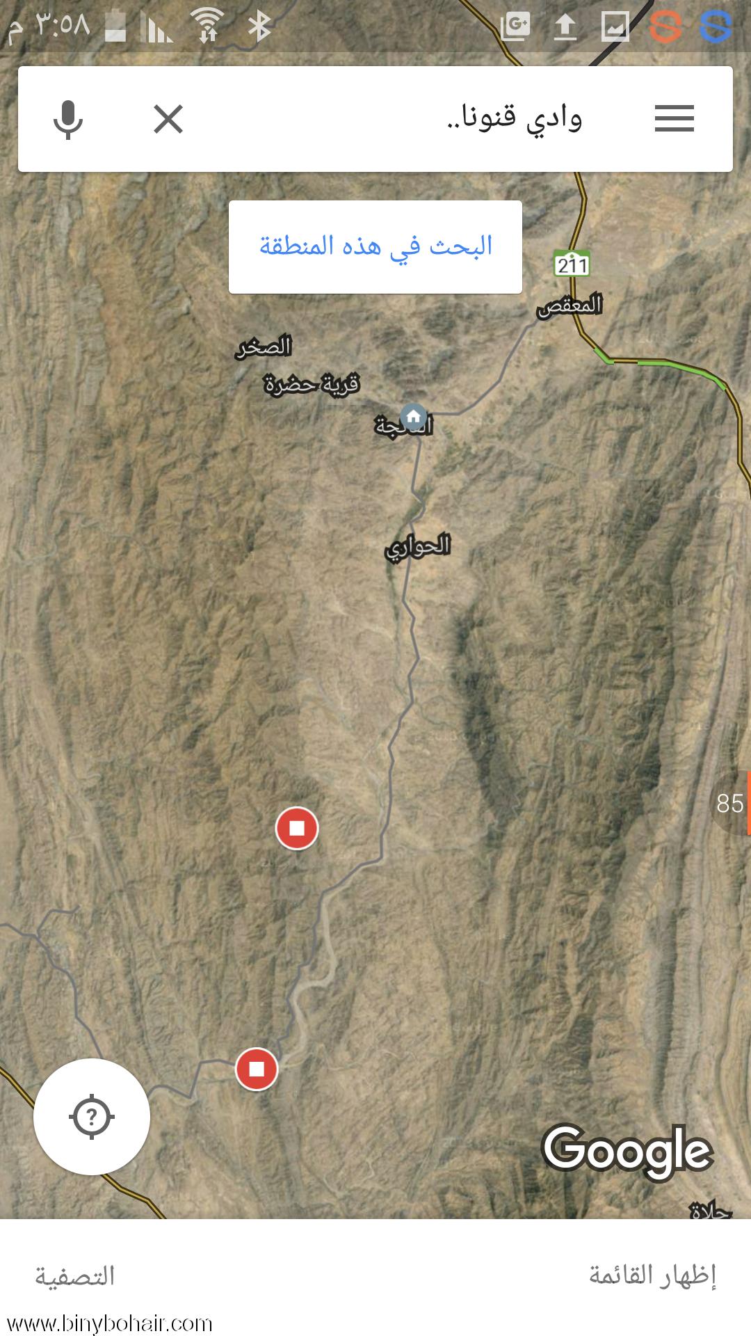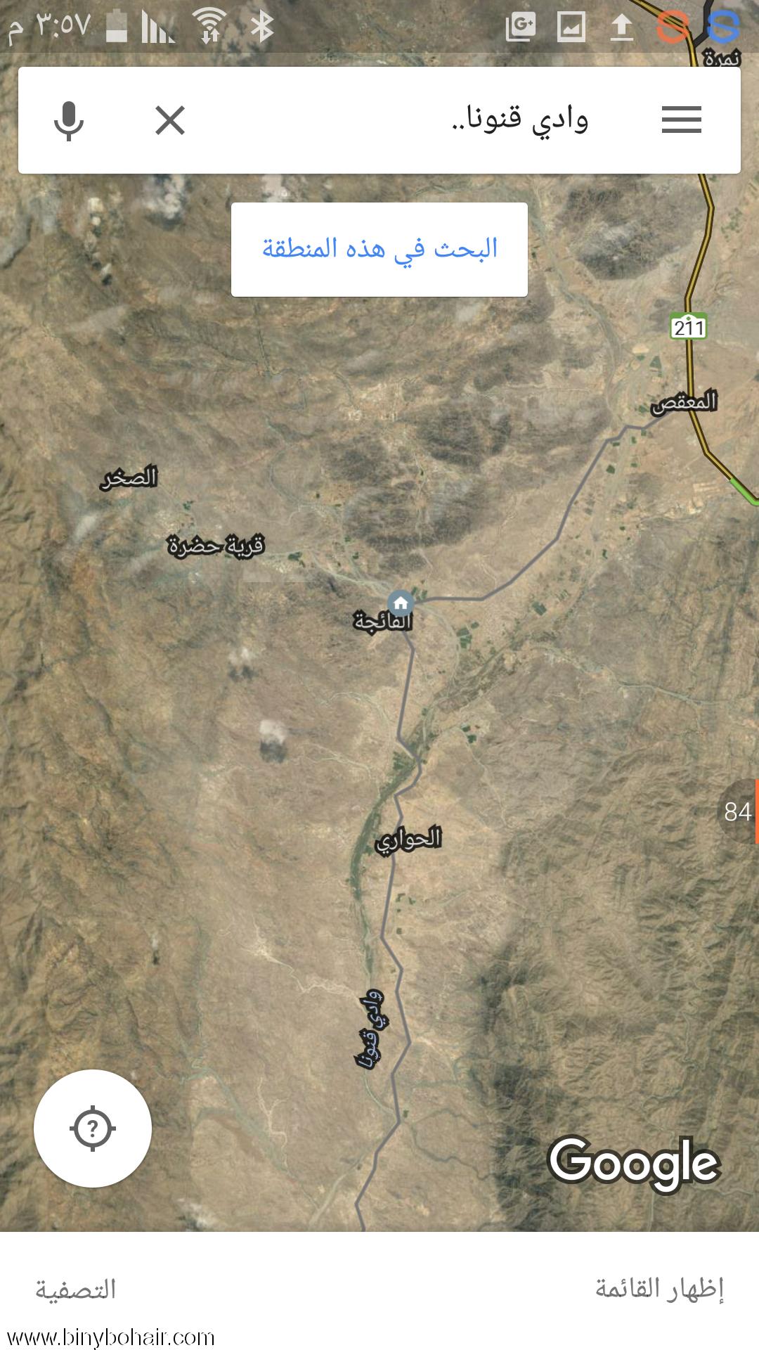 ![]() ![]() وادي قنونى منابعه من وادي الخيطان والحفيان ورحمان مروراًً إلى نمره (يمر بقرية السر ببني المنتشر) على المعقص ويمر ببلاد بني بحيربلقرن والتي تمتلك صدر وادي قنونى وهو الجزء الاهم في وادي قنونى حيث الماء والاراضي الزراعية والنخيل نزولاً للجنوب ويمر بعدة هجرمن جانبي الوادي وصولاً لقرية الحازمين حيث يوجد سد وادي قنونى ومنها إلى سبت الجارة على قرية الأحد نزولاً بالقنفذة غرباً ![]() ![]() https://www.google.com.sa/search?hl=...1&rlfi=hd:;si: أو https://www.google.com.sa/maps/searc...!3m1!1e3?hl=ar . أو https://goo.gl/maps/SGkSUFRC9Wk