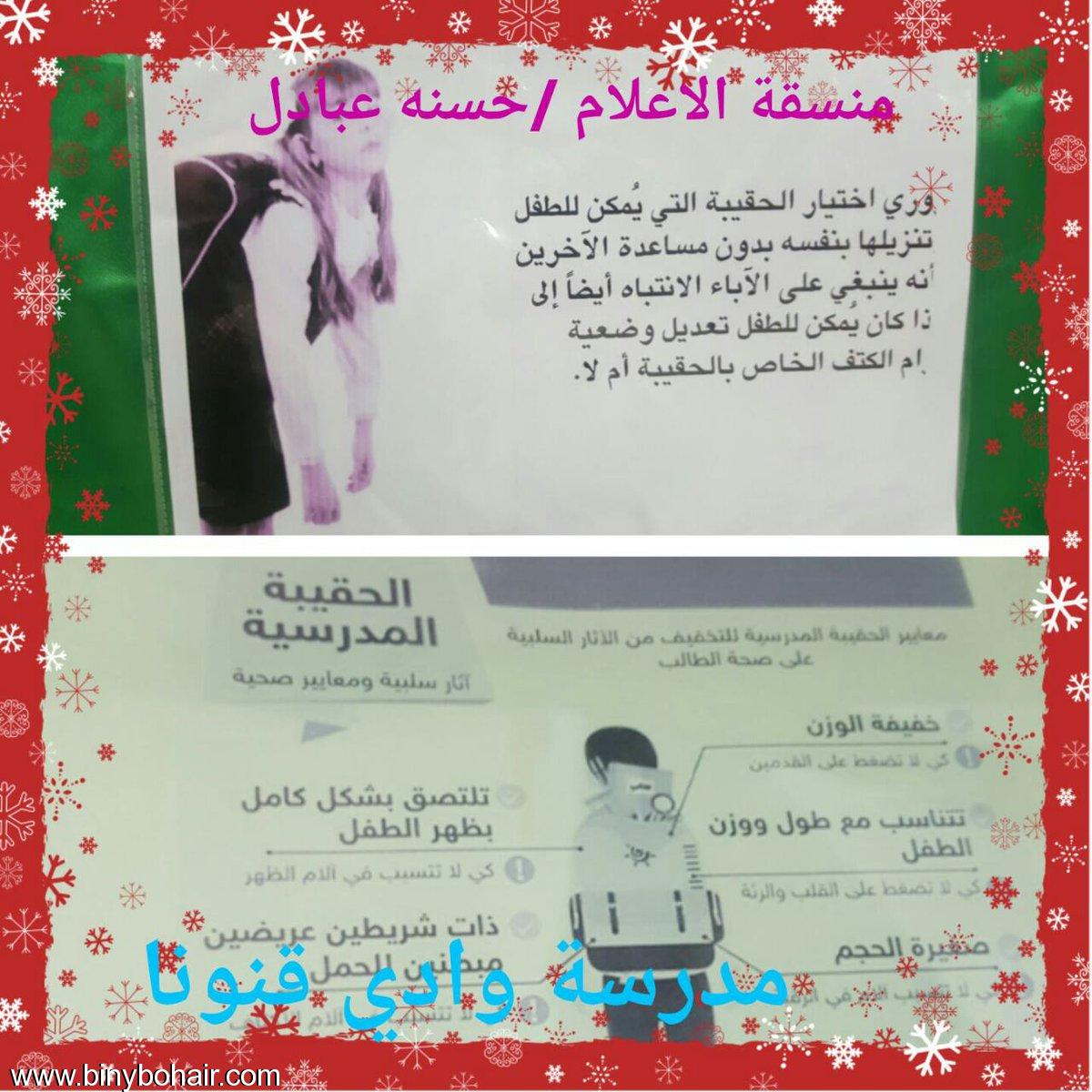 ![]() ![]() أقامت مدرسة وادي قنونا للبنات (حقيبتي المثالية) يوم الخميس الموافق 1438/1/19هـ وهو برنامج توعوي عن الحقيبة المدرسية المثالية حيث تم تفعيله من خلال البرنامج المعد حيث شمل على عدة فقرات تعريفية بمواصفات الحقيبة المثالية ومميزاتها وكذالك أضرار الحقيبة الغير صحية. ![]() ![]() ![]() ![]() |
