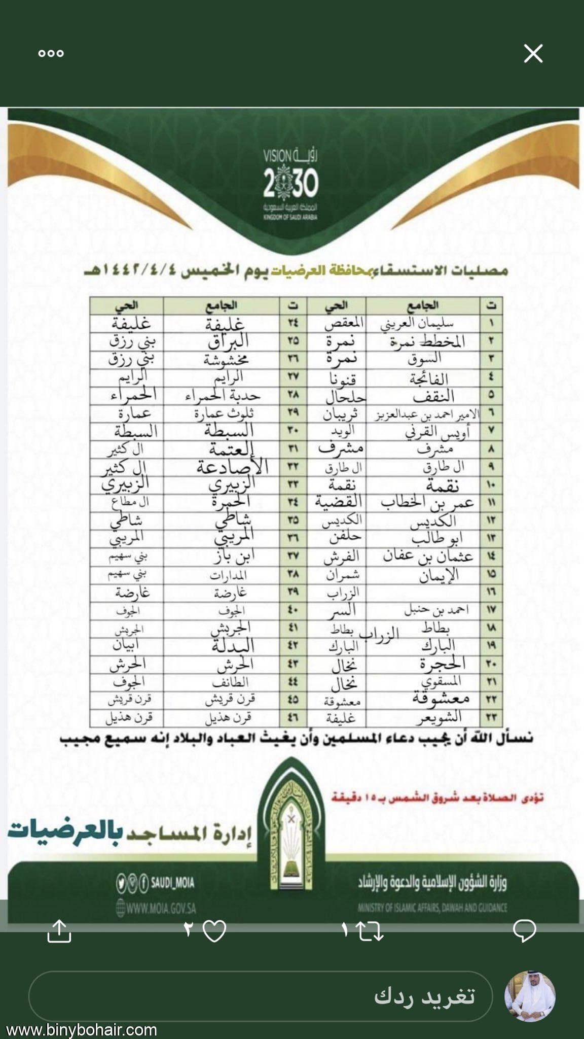 ‏علمًا بأن #صلاة_الاستسقاء تقام عند الساعة 6:38 ص ..
